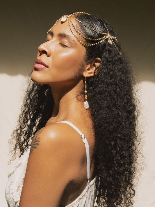 Brinco Positano Longo Topazio Imperial e Pérola Barroca
