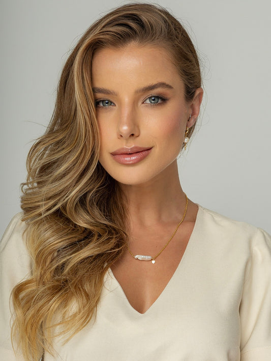 Colar Cometa Pedras Naturais e Pérola Barroca